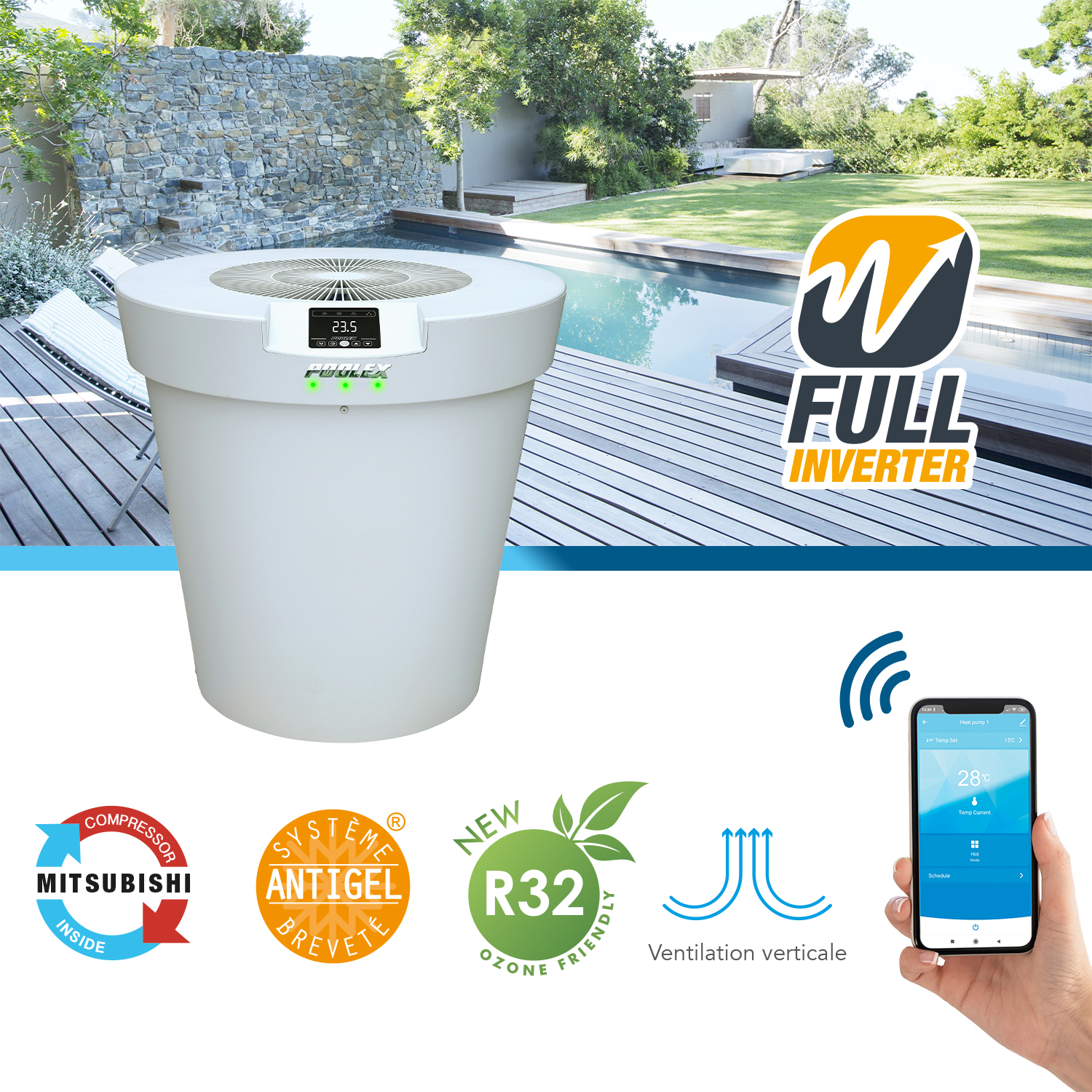 Pompe à chaleur piscine Poolex Platinium Mini 50 Full Inverter – WiFi